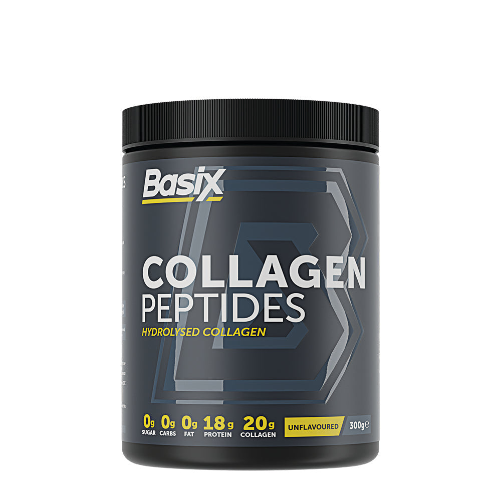 Basix Collagen Peptides is a clean, unflavored collagen powder that can be mixed into smoothies, coffee, or recipes. It’s made from hydrolyzed bovine collagen peptides, which are broken down for better absorption and bioavailability.