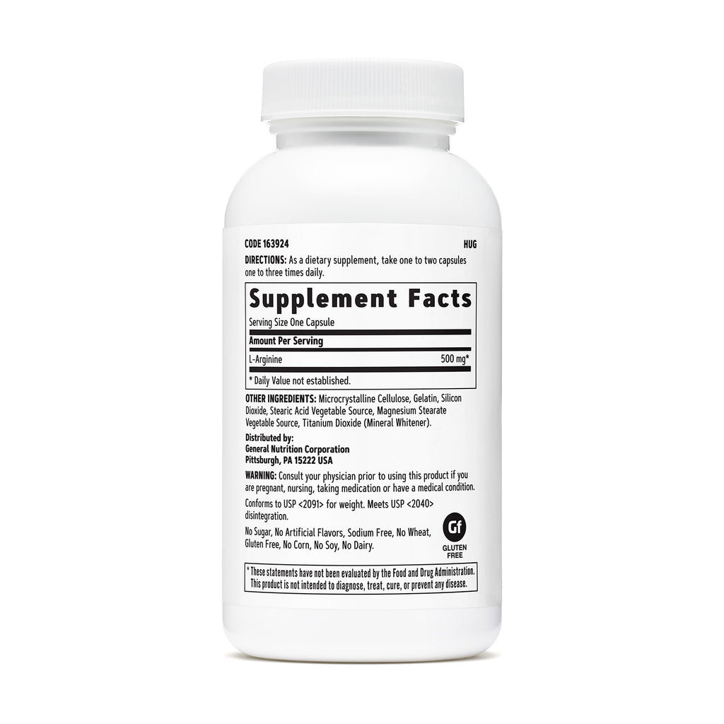GNC L-Arginine 500 mg supports healthy circulation, energy, and workout performance with nitric oxide support for heart and vascular health.