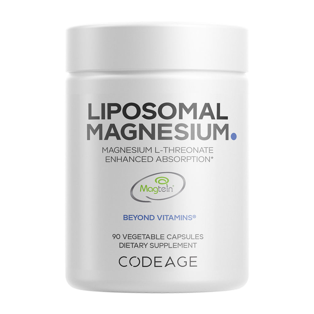 مكمّل Magnesium L-Threonate من Codeage يتميّز بصيغة ليبوسومال متقدّمة تضمن امتصاصًا عاليًا للمغنيسيوم داخل الجسم لدعم وظائف الدماغ، التركيز، وصحة الأعصاب.