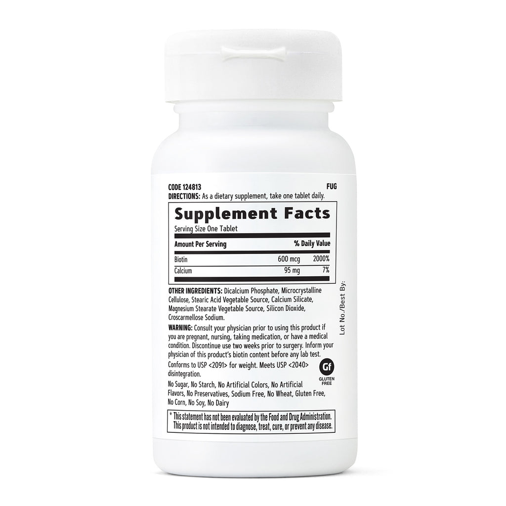 GNC Biotin 600 mcg is a high-quality dietary supplement designed to support healthy hair, skin, and nails. Each tablet contains 600 mcg of biotin, aiding in energy production and supporting metabolism.