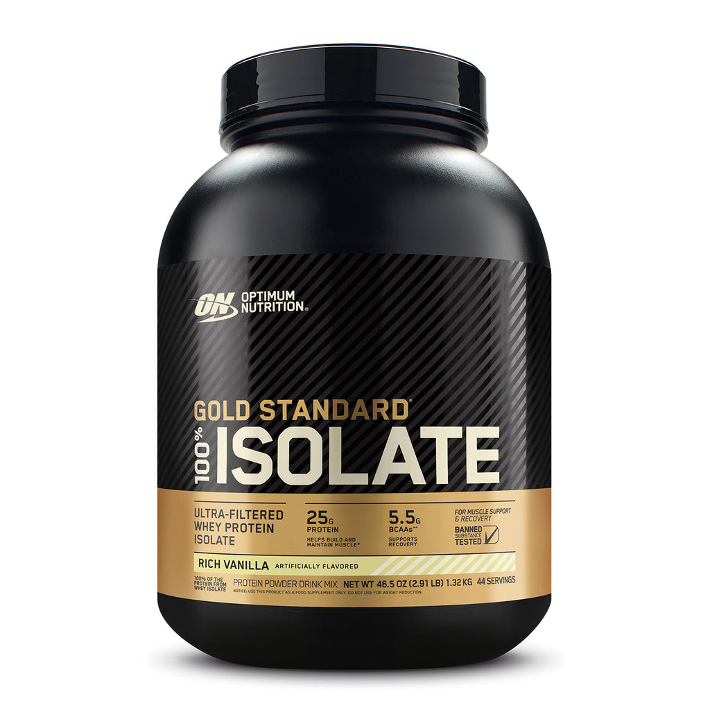 The Optimum Nutrition Gold Standard® 100% Isolate offers premium high-purity isolated protein to support muscle building and recovery. With very low fat and carbohydrate content, it fits various healthy diets. Enjoy its rich vanilla flavor, suitable for athletes and anyone looking to boost their daily protein intake.