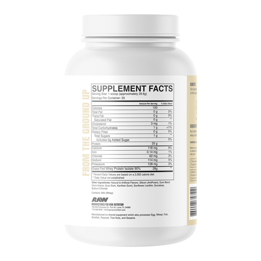 يحتوي RAW Isolate Protein على 25 غرام من بروتين الواي النقي والمعزول لدعم نمو العضلات الخالية من الدهون وتعزيز التعافي بعد التمرين.